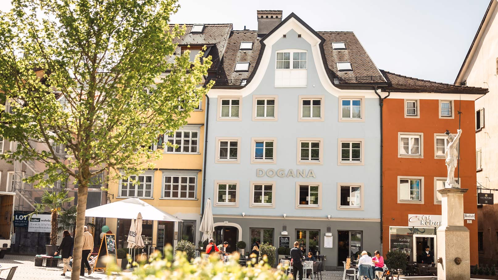 Das Dogana ist drei in einem: Speiselokal, Café und Bar. Man kann genauso gut frühstücken wie Cocktails trinken. Und dazwischen werden abwechslungsreiche Mittagsmenüs und Speisen von der Tageskarte serviert. Im Obergeschoss befindet sich das Restaurant, im Untergeschoss neigt sich der Café- und Bar-Bereich mit seinem Gastgarten zur Fußgängerzone hin. Und mit Blick auf die Schattenburg schmeckt’s gleich doppelt so gut.