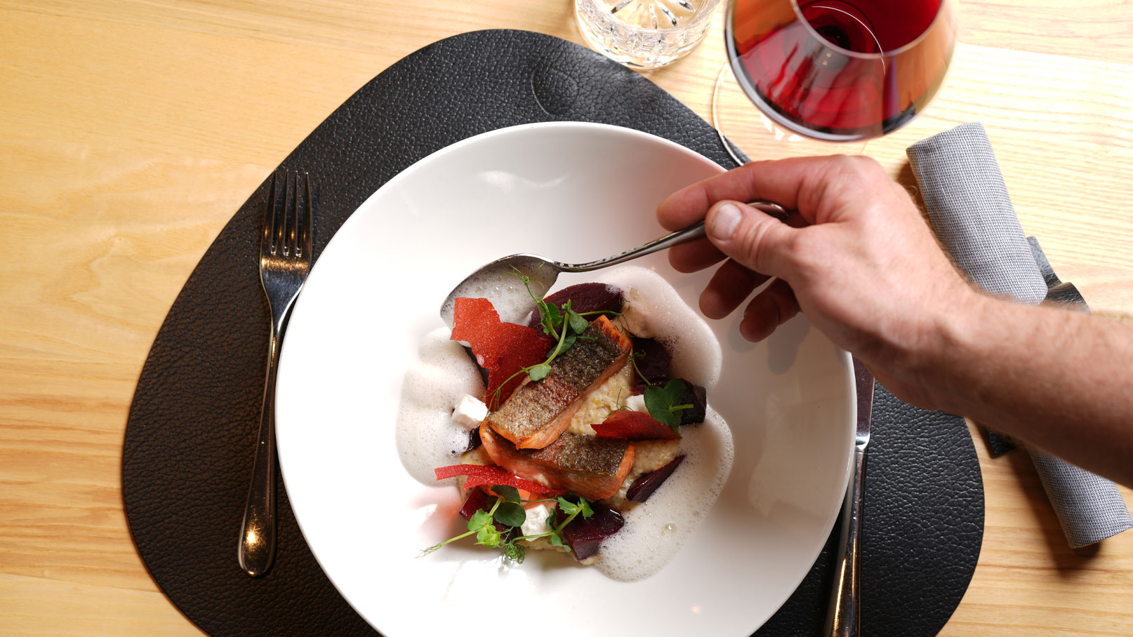 Die „Löffelspitze“ wurde mit drei und die „Genusshalde“ mit zwei Hauben im Gault&Millau sowie drei Gabeln im Falstaff Restaurantguide prämiert. Die Bar „Novum“ erhielt 2025 den Falstaff-Titel „Bar-Juwel des Jahres“. Für seine erlesene Weinauswahl mit rund 2.500 Positionen wurde das Hotel 2024 vom Wine Spectator mit dem Award of Excellence geehrt. Darüber hinaus wurde die Weinkarte vom VDP Deutschland 2025 im Rahmen des Wettbewerbs „Ausgezeichnete Weinkonzepte“ gelistet und erreichte bei der Star Wine List Österreich gleich drei Mal Silber.