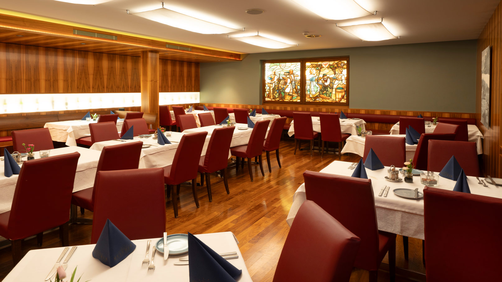 Das Privileg, so nah am Bodensee zu liegen, weiß auch die Küche im Hotel Messmer zu schätzen und bietet neben Vorarlberger Klassikern auch frischen Bodenseefisch. Sehr zu empfehlen sind die Fünf-Gänge-Menüs in der traditionsreichen Weinstube und entspannte Abende in der Hotelbar – am besten mit erlesenen Weinen aus dem hauseigenen Weinkeller.