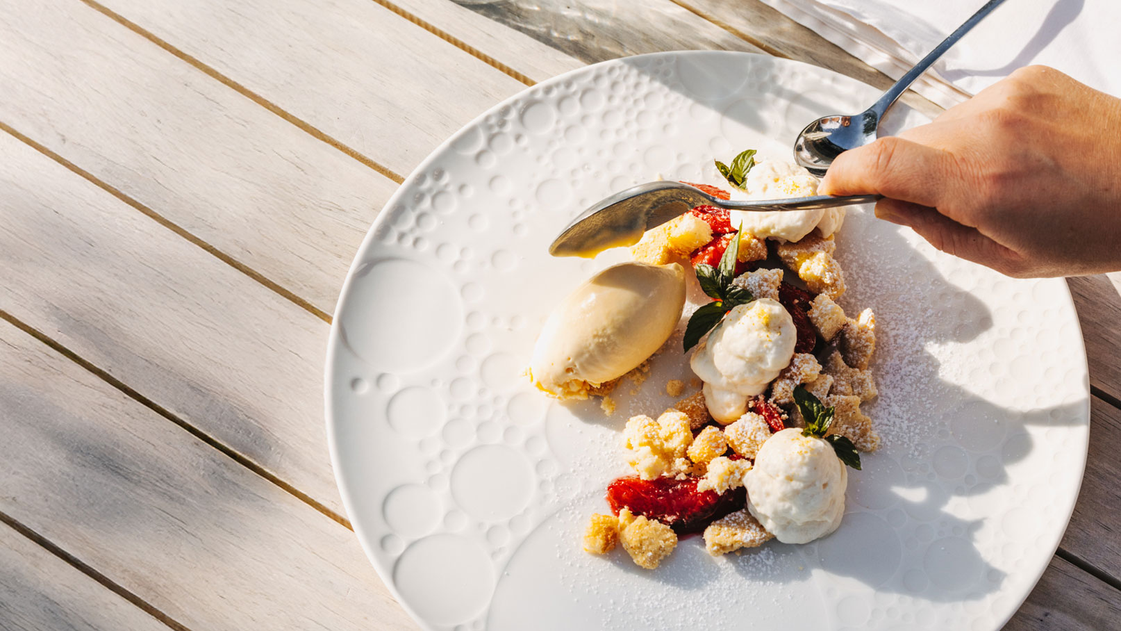 Die Küche des Wälderhofs schöpft aus dem Reichtum der Umgebung: Kräuter aus dem Garten, Beeren vom Waldrand, Pilze von den Wiesen. In enger Zusammenarbeit mit heimischen Landwirt:innen und Produzent:innen entsteht eine naturnahe Küche, die Frische und Qualität in den Mittelpunkt stellt. Bei schönem Wetter genießt man die Gerichte auf der Sonnenterrasse – mit Blick auf die malerische Landschaft des Bregenzerwaldes.