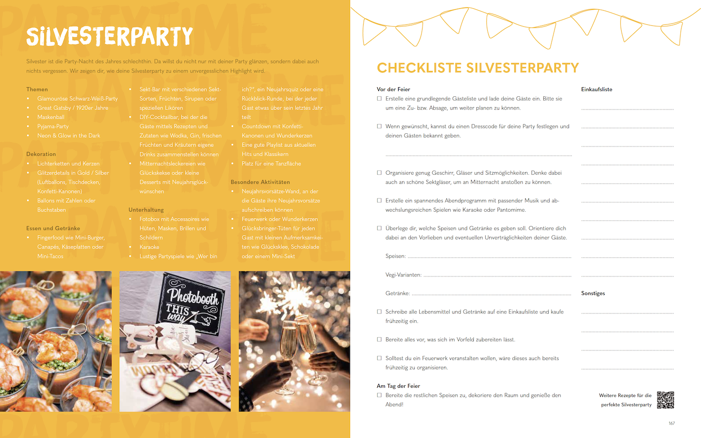 Von Fingerfood, das verführt, bis hin zu praktischen Checklisten, die dich Schritt für Schritt bei der Planung und Durchführung deiner Feste begleiten, ist dieses Kochbuch ist mehr als eine Rezeptsammlung – es ist eine Einladung, das Leben zu feiern, Teller für Teller, Glas für Glas. Also: Lade ein, deck den Tisch und lass die Küche zur Bühne werden!