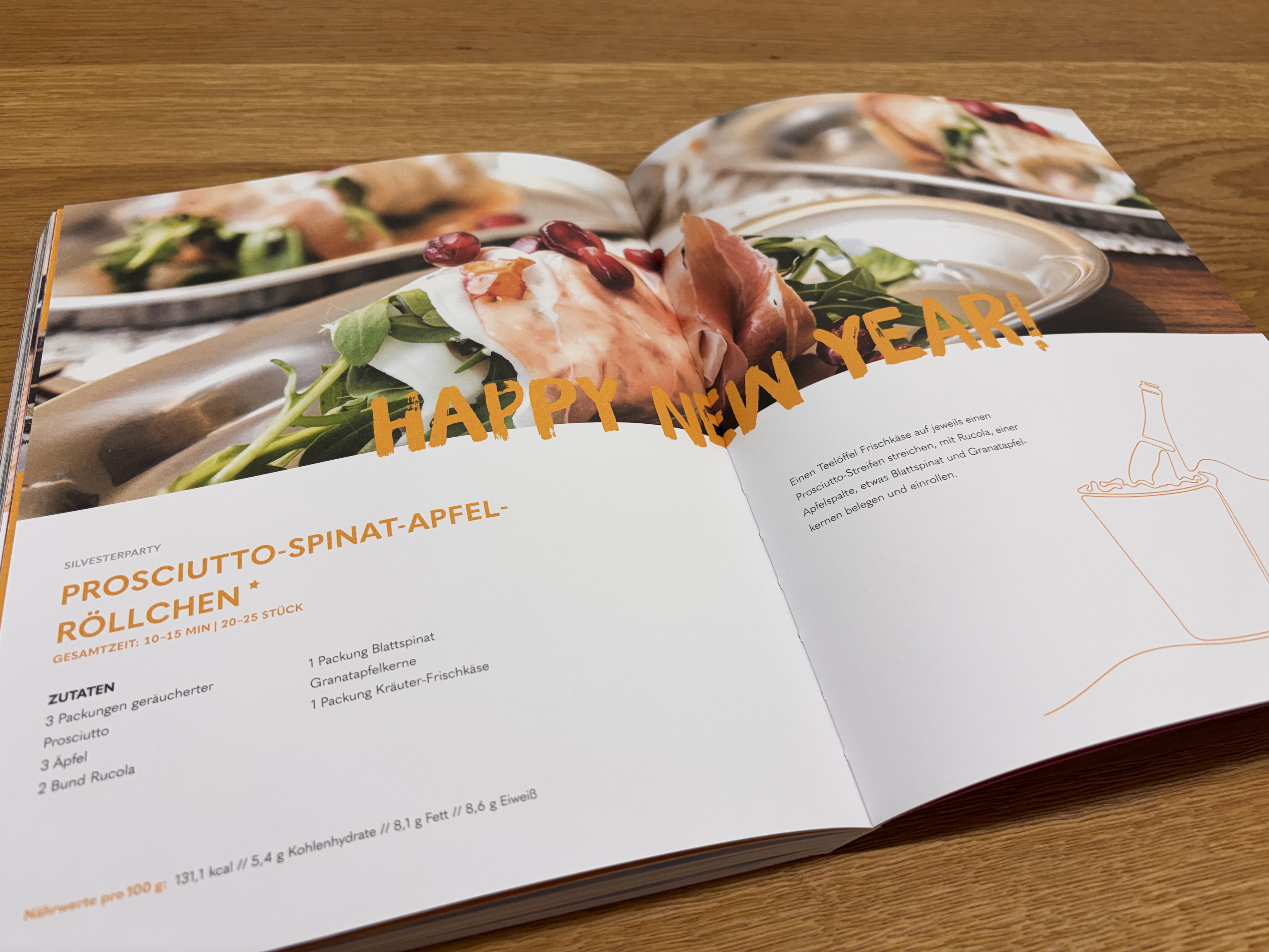 - Party Time, Innenteil Rezept Prosciutto-Spinat-Apfel-Röllchen